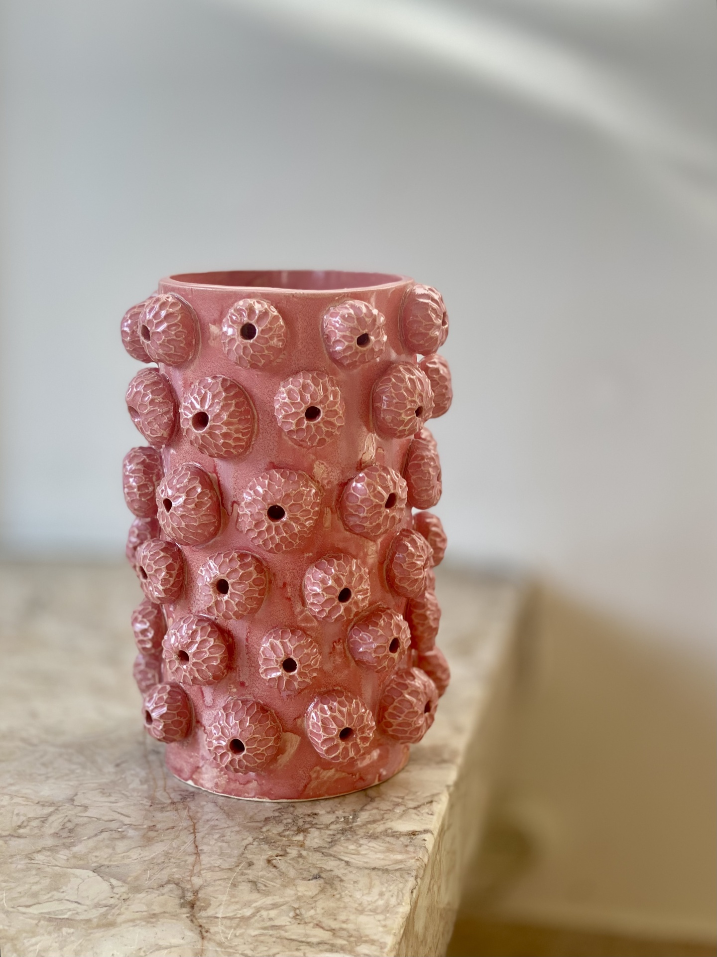 Peça em grés com presença  que marca um espaço respirando as formas orgânicas características da estética da coleção Ouriço. Conto a história do delicado equilibro  entre a força, a fragilidade e subtileza que já é habitual na coleção.